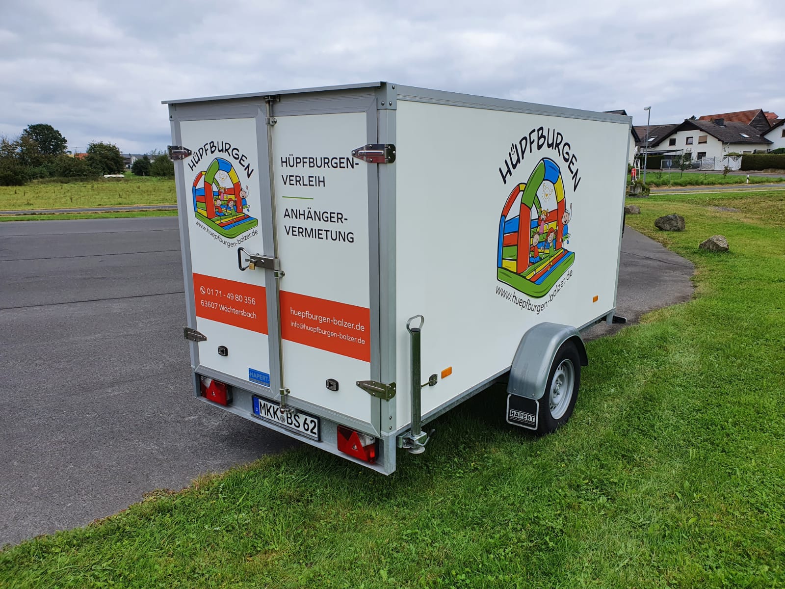 Unser kleiner Kofferanhänger kann gerne für den Transport einer Hüpfburg mit gemietet werden.