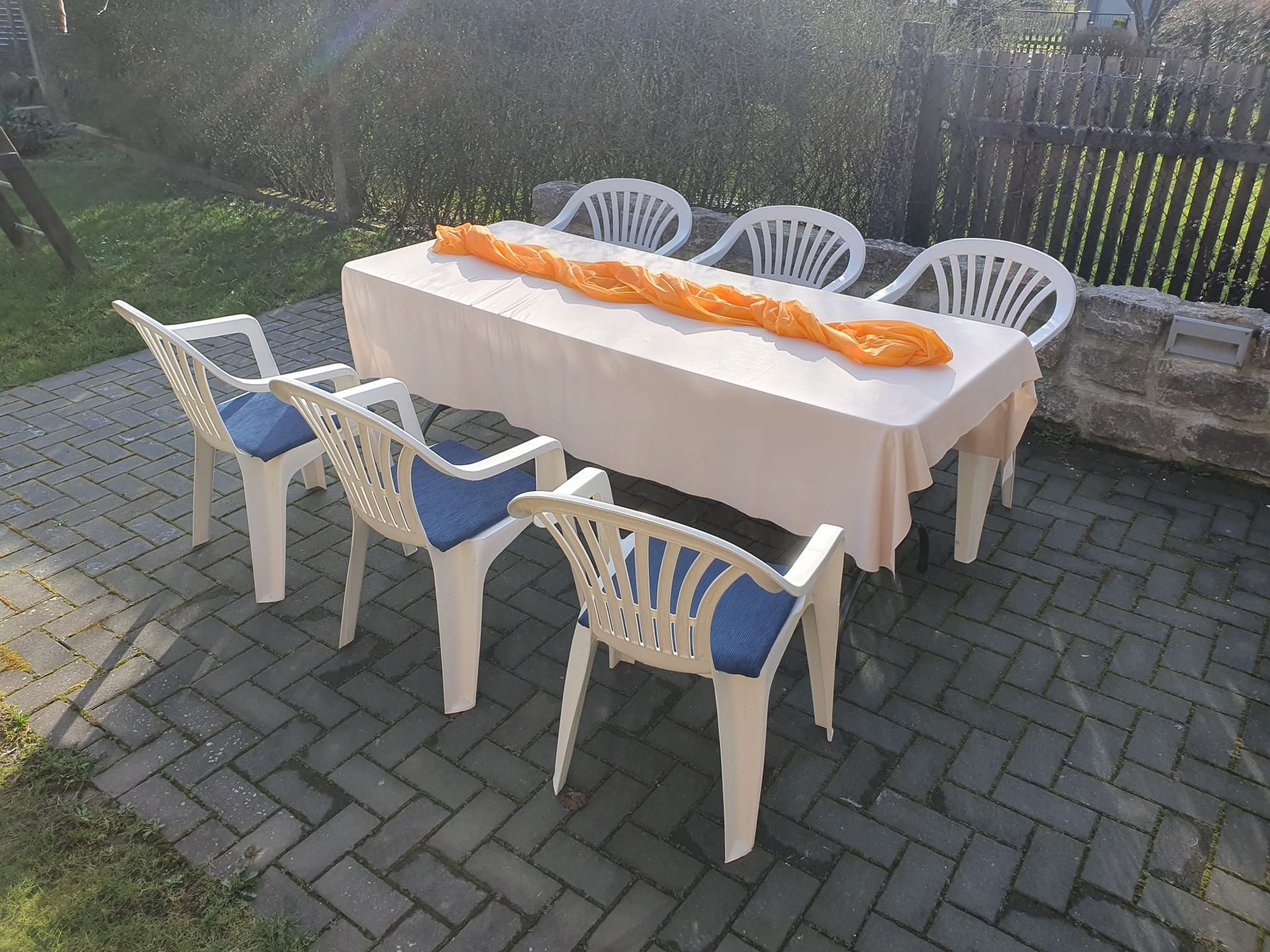 Banketttisch inkl. 6 Stühle und Sitzauflage
